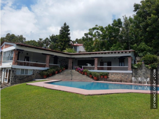 CASA ESTILO CUERNAVACA (COLONIA MEXICANO) CON ESPACIOS ABIERTOS, RODEADA DE ARBOLES MADUROS Y FRUTALES. TERRENO IRREGULAR.